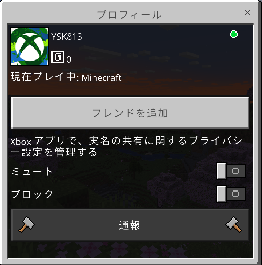 Step 1:Minecraft内で YSK813 にフレンド申請を行います。
